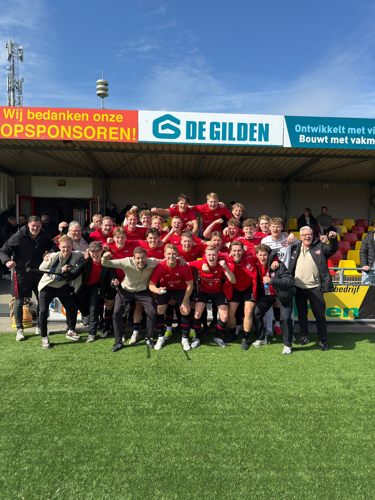 Na het laatste fluitsignaal was duidelijk dat de periodetitel binnen was gesleept, en kon dit gevierd worden met de meegereisde supporters!