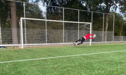 Op woensdag laten de goalies tijdens de training door keeperstrainer Esken Smoes zien welke kwaliteiten ze in huis hebben. Zoals de foto’s laten zien, vlogen tijdens deze training Jonathan Goossen, Jurre Fokke en Sjoerd Lamberts letterlijk door de lucht.