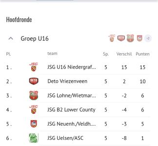 Dit weekend deden de spelers van JO17-1 mee aan de internationale Volksbank-Cup in Emlichheim. In de Vechtetalhalle wisten ze een prachtige tweede plaats te behalen in een poule met onder andere Duitse clubs. “Het team heeft alles gegeven, dit is een resultaat om trots op te zijn”, aldus de coach Jacco Eshuis.